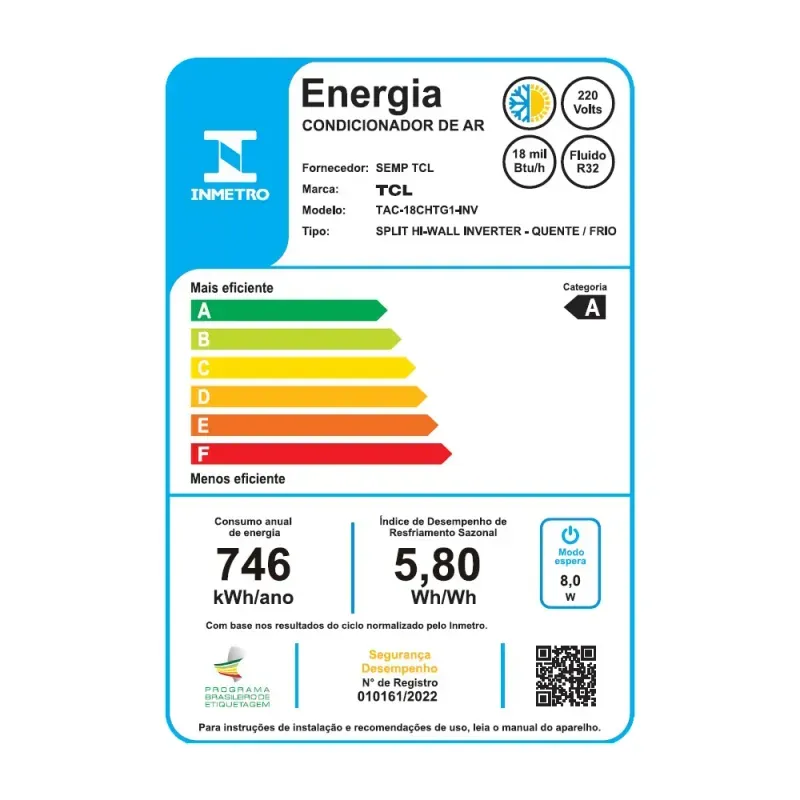 Além disso, o Ar Condicionado Split Tcl possui conexão wi-fi e comando de voz, permitindo que você controle seu ar condicionado de qualquer lugar através do TCL Home APP, ou por comandos de voz quando estiver em casa. O modo ECO proporciona maior economia de energia. O fluido refrigerante R-32 é ecologicamente correto com baixíssimo impacto ambiental e maior eficiência energética.