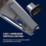 Diferenciais | Função 2 em 1: Use como aspirador vertical ou de mão, adaptando-se a qualquer superfície; Filtro HEPA: Filtra impurezas e microrganismos, garantindo um ambiente mais saudável para sua família; Sem Saco para Pó: Reservatório de fácil remoção e lavável, gerando mais economia e menos resíduos; Design Compacto: Fácil de guardar, ocupando pouco espaço na sua área de serviço; Acessórios Inclusos: Acompanha bocais específicos para cantos e frestas, ampliando as possibilidades de limpeza. |
