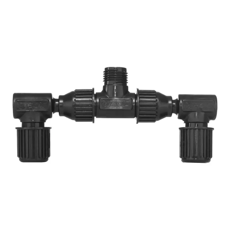 - Com 2 bicos posicionados no mesmo ângulo, a penetração e cobertura da aplicação será mais ágil e eficiente durante a pulverização.
