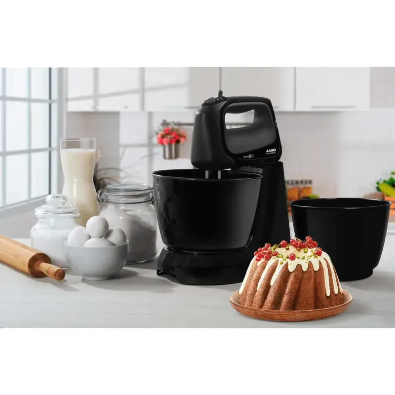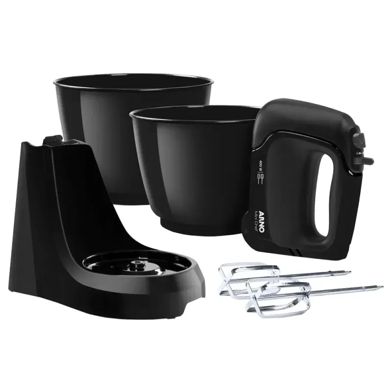 Conteúdo da Embalagem | 1 Batedeira Arno Facilita, 4 Velocidades + Pulsar, 400W, Preta - HM11 220V |