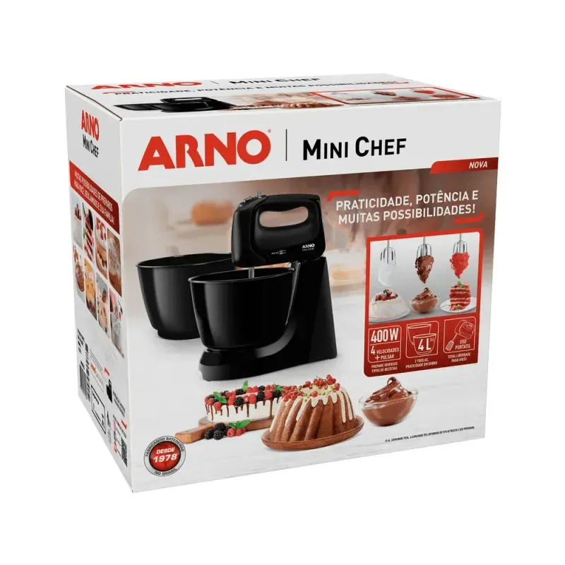 Diferenciais | - Possui 1 par de batedores multifuncionais para um preparo de massas, recheios e coberturas;