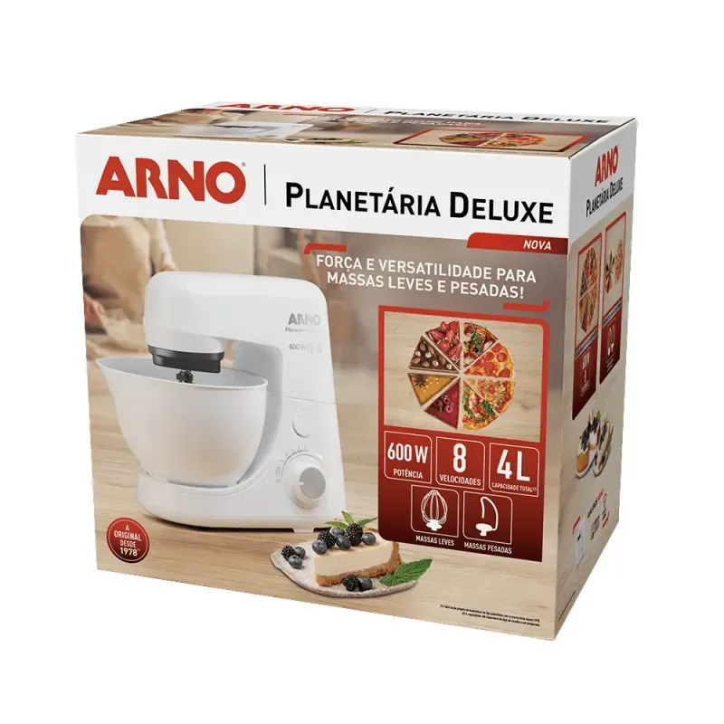 Conteúdo da Embalagem | 1 Batedeira Planetária Arno Nova Deluxe, 8 Velocidades, 600W, Branca – SX33 220V