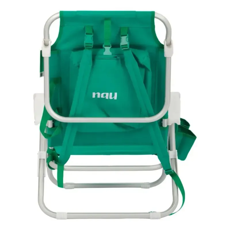 A Cadeira Espreguiçadeira Mochila Nau Verde Alga Nautika é a escolha ideal para quem busca conforto e praticidade em seus momentos de lazer ao ar livre. Com um design inteligente e multifuncionalidade, ela se transforma de cadeira de praia em uma confortável espreguiçadeira com 5 posições de reclínio, permitindo até deitar-se completamente (180°). Sua estrutura resistente em alumínio anodizado proporciona resistência e leveza, enquanto o tecido em Poliéster 600D com revestimento em PVC oferece conforto e facilidade na limpeza, suportando até 136 kg. Desenvolvida para sua conveniência, esta cadeira mochila possui alças ajustáveis para transporte nas costas, liberando as mãos. Dispõe ainda de dois bolsos laterais e um amplo compartimento traseiro com zíper, ideais para guardar pertences com segurança e organização. Na cor Verde Alga, agrega um toque de estilo aos seus dias de praia, piscina ou camping.