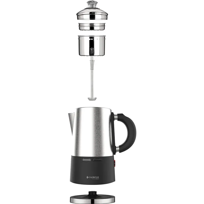 Diferenciais | - Corpo em INOX: com estrutura em aço inoxidável, que proporciona durabilidade, facilidade na limpeza e dispensa o uso de filtro de papel. Além de não absorver gosto ou cheiro.