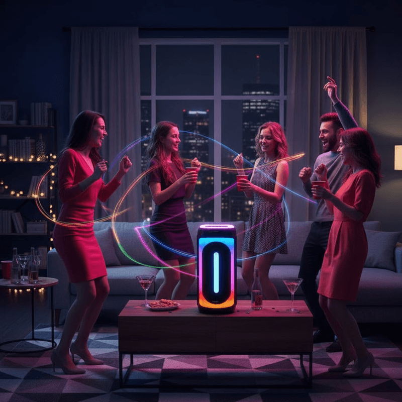 - Show de Luzes LED: Iluminação dinâmica frontal que sincroniza com o ritmo da música.