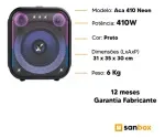 - Potência de 400W RMS: Som potente com graves reforçados para preencher o ambiente.