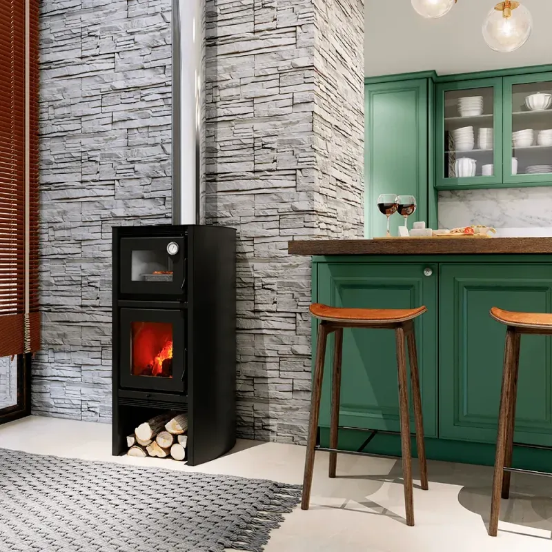 - Vidro cerâmico importado na porta capaz de transmitir todo o calor gerado internamente ao ambiente onde estiver instalado.