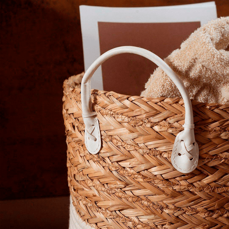- Design artesanal com toque natural: mistura de seagrass e algodão traz aconchego e estilo.