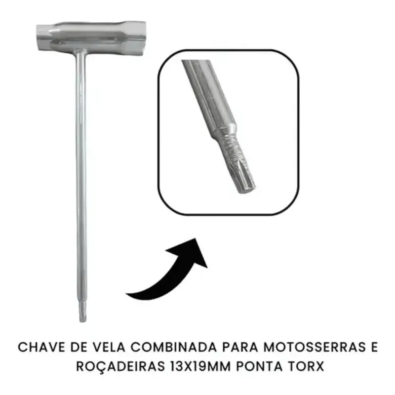 Medidas duplas: Com 13x19 mm, oferece as duas medidas mais comuns para velas de motosserra em uma única ferramenta, otimizando seu trabalho.
