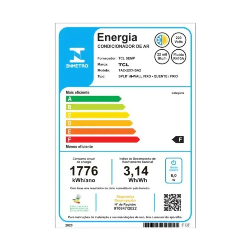 Produto: Condensador De Ar Tcl 22.000 Btus Split E Tac 22chsa2