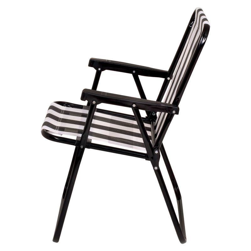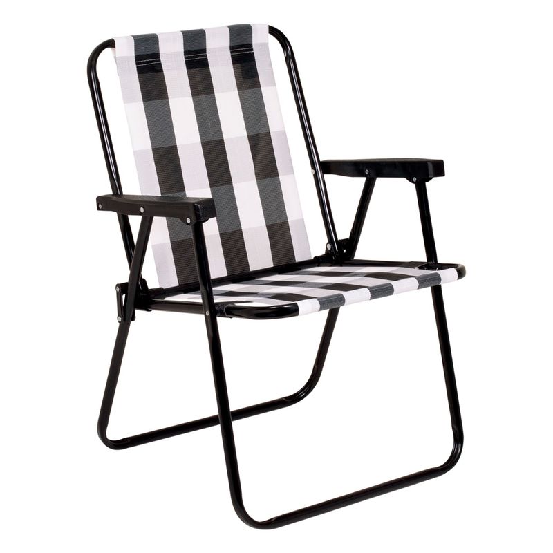 A nova Cadeira Alta Retrô possui design moderno e super nostálgico, que transforma qualquer ambiente. Dobrável e fácil de carregar, ela é super prática e confortável, perfeita para te acompanhar no camping, na pescaria ou no final de tarde com os amigos na varanda ou jardim de casa. Muito resistente, tem estrutura fabricada em aço carbono com acabamento em pintura epóxi à pó preta e peças plásticas em polipropileno, suportando até 110 Kg. Para guardá-la, basta dobrar e colocar em qualquer cantinho da sua casa. Sua tela é produzida em 100 % poliéster!