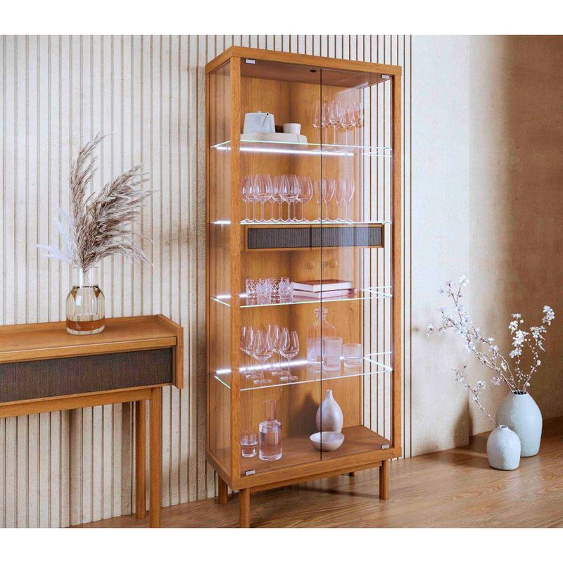 Ideal para salas de jantar, estar ou cozinhas planejadas, a cristaleira conta com portas de vidro, que além de protegerem os objetos contra poeira, permitem a exposição de taças, copos, louças e decorações com muito estilo. Seu interior bem distribuído, com prateleiras resistentes, permite uma organização prática e visualmente agradável.