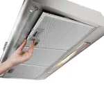 - Filtro Metálico Lavável: Elimina gordura e fumaça. Frequentemente utilizado em coifas, é mais durável, mais prático e mais fácil de limpar.