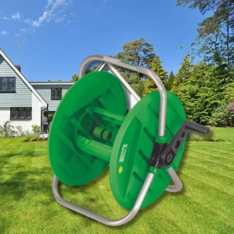 Capacidade Ampla: Comporta até 80 metros de mangueira de jardim, ideal para cobrir grandes áreas com facilidade.