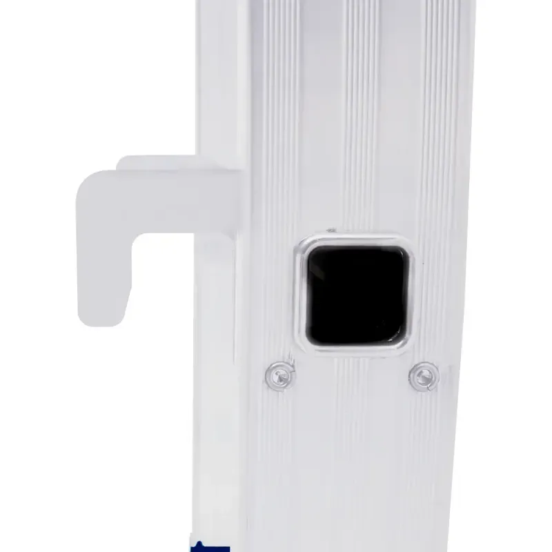 A Escada Extensiva Mor 2x15 oferece três modos de utilização, os quais podem se adequar a sua necessidade: extensível, aberta e simples. Com 3 anos de garantia, ela suporta até 150 Kg e alcança até 7,57 metros. Sua estrutura é confeccionada 100% em alumínio produzido na Mor, garantindo melhor qualidade estrutural ao produto, pois há controle de todo processo de fabricação. Além disso, o alumínio é um material leve e durável mesmo em áreas litorâneas. A escada conta com rodas que facilitam o uso, sistema de articulação com encaixe de travamento que proporciona maior segurança e abertura cônica dos pés e sapatas antiderrapantes, garantindo mais estabilidade.