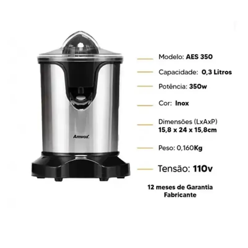 Descrição do Produto: O espremedor Amvox AES 350 foi desenvolvido para oferecer performance sem esforço. Com seu motor de