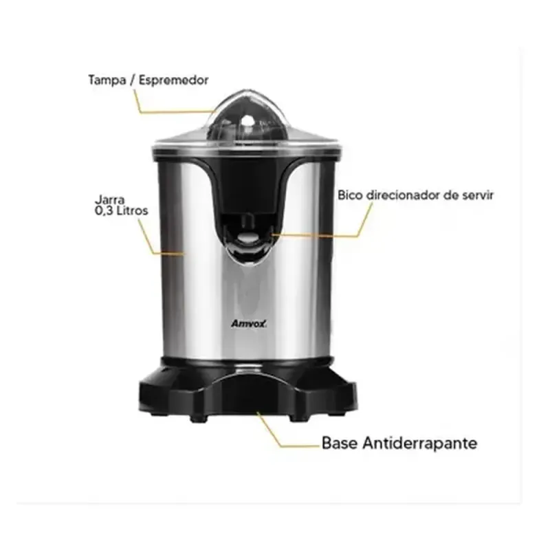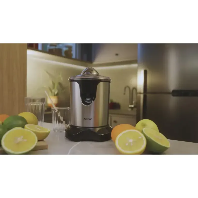 Espremedor Amvox AES 350 une a robustez do acabamento em aço inox com uma potência surpreendente, ideal para quem busca agilidade e durabilidade no dia a dia.