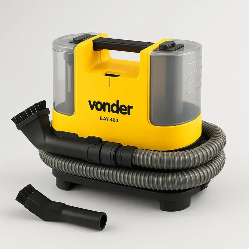 A Extratora Portátil ELV400 Vonder 220V é a escolha perfeita para quem busca praticidade e eficiência na limpeza profunda de estofados, sofás, poltronas, carpetes, tapetes e bancos automotivos. Compacta e fácil de transportar, injeta a solução de limpeza e aspira a sujeira de forma simultânea, proporcionando um resultado rápido e de alta qualidade. Com design moderno e reservatórios independentes para água limpa e suja, evita contaminações e garante maior praticidade no uso. É indicada tanto para uso doméstico quanto para profissionais de higienização que desejam oferecer um serviço diferenciado com a confiabilidade da marca Vonder.