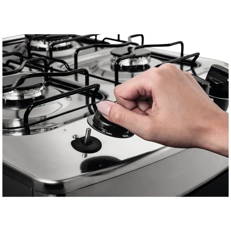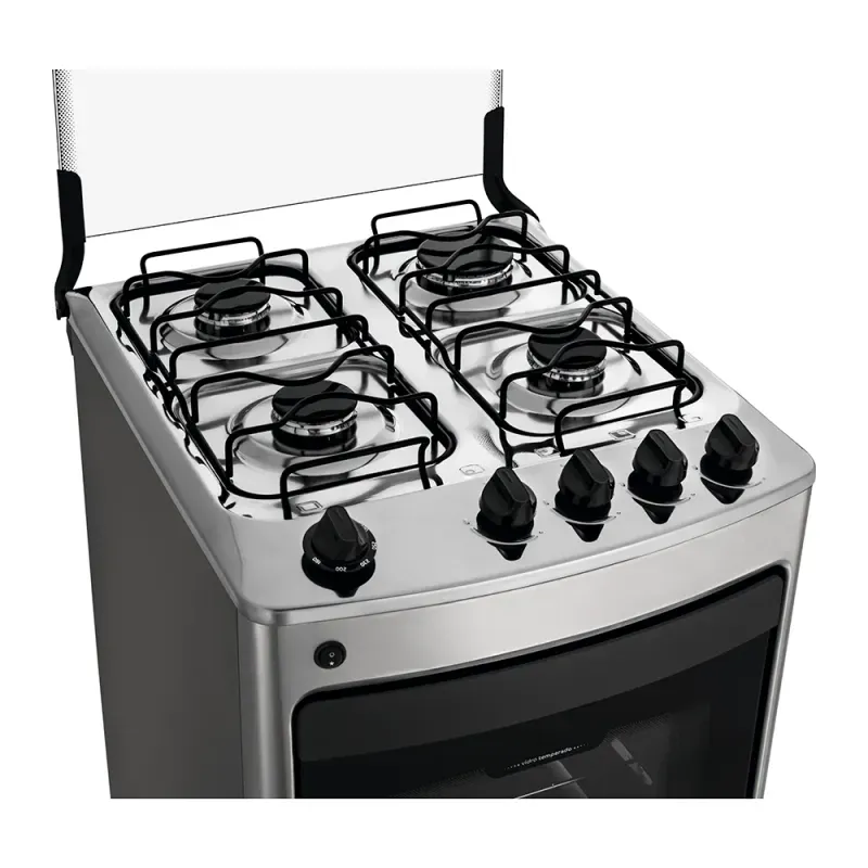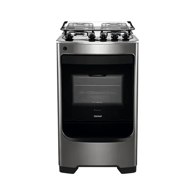 Os novos fogões 4 bocas Consul tem um design moderno frente única, com menos recortes para facilitar a limpeza, conta com o forno Limpa + Fácil, junção da tecnologia Cleartec e do vidro interno vedado, que evita o acumulo de gordura. Pensando em facilitar mais a limpeza, os modelos contam com mesa compartimentada e manípulos removíveis.