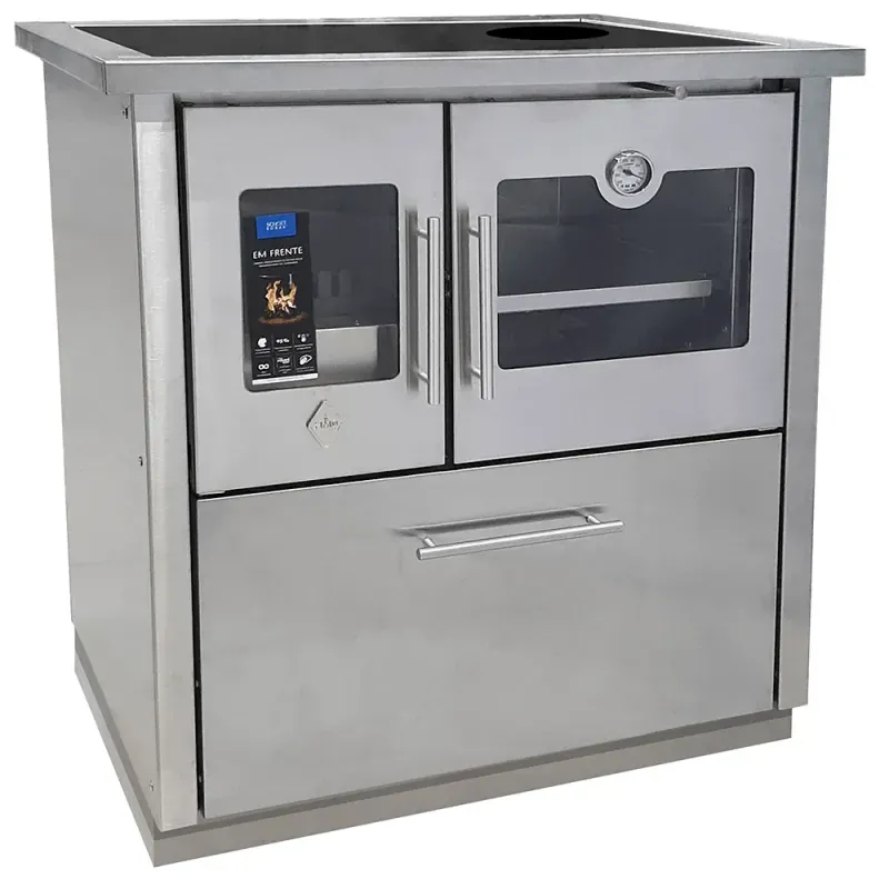 - Possui estrutura em aço inox e aço zincado com revestimento interno em pedra refratária. |