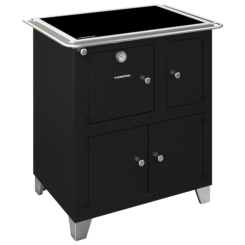 O Fogão a Lenha Antonow Roma Preto redefine a experiência de cozinhar, unindo o charme atemporal da culinária à lenha com a praticidade e a tecnologia atual. Projetado para proporcionar momentos inesquecíveis, ele se destaca pela sua chapa vitrocerâmica, que garante um cozimento rápido e uma limpeza descomplicada, e pelo sistema de tripla combustão, que otimiza o uso da lenha, gerando mais calor com menor consumo. O robusto forno de 30 litros em inox, com isolamento térmico multicamadas e termostato analógico, permite um controle de temperatura preciso para assados e gratinados perfeitos. Com estrutura em aço carbono de grande resistência e detalhes em aço inox, além de uma prática gaveta de cinzas, este fogão não só embeleza sua cozinha com seu design elegante, mas também oferece funcionalidade superior e manutenção simplificada, tornando-o o coração de qualquer lar que valorize tradição e inovação.