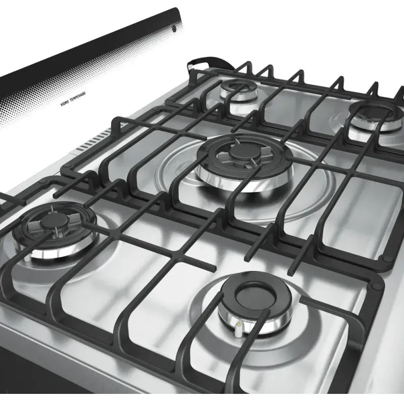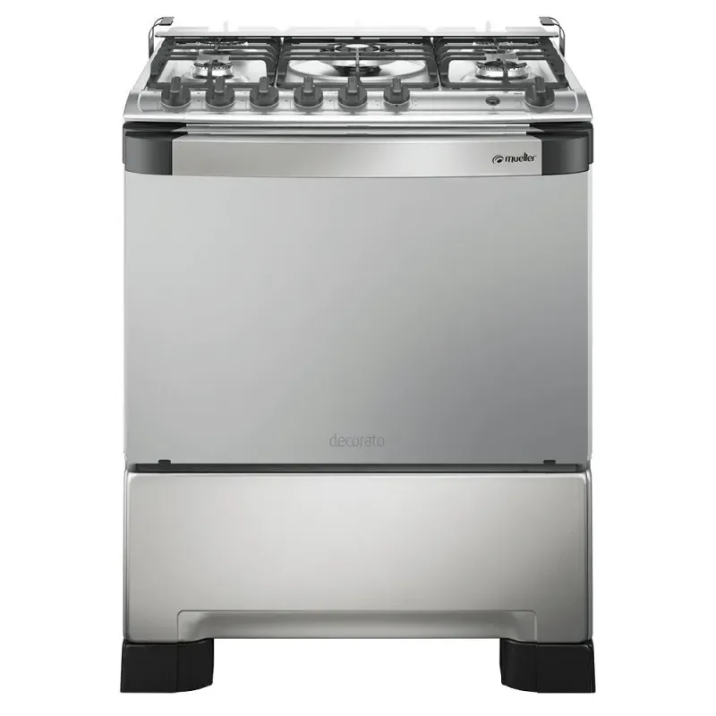 Para quem aprecia uma receita bem executada, este é o fogão ideal. O Decorato Gourmet Mueller une estilo e eficiência em 5 bocas com chamas de diferentes potências, permitindo que você use toda a sua criatividade para explorar novas receitas e criar pratos saborosos em um fogão com performance altamente eficiente. Queimadores tripla chama, dupla chama, família e médio, para você explorar suas receitas com mais liberdade. Mesa 5 bocas com três grades duplas de ferro fundido. Segurança e suporte para sua criatividade. Suas receitas no ponto certo. Prateleira inferior deslizante e superior com altura ajustável. Forno com espaço para assar mais de uma receita ao mesmo tempo.