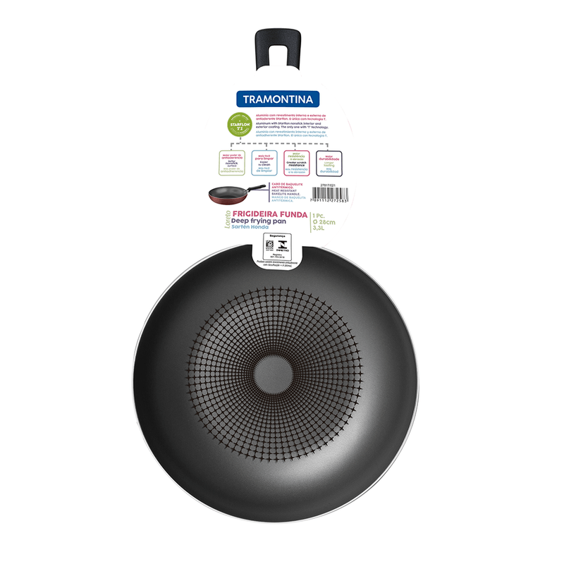Você vai se impressionar com a Frigideira Funda Tramontina Loreto em Alumínio com Revestimento Interno Antiaderente Starflon T1 Vermelha 28 cm de diâmetro 3,3 L. Produzida em alumínio com revestimento interno de antiaderente Starflon T1, ela possui maior poder de antiaderência, maior resistência à a