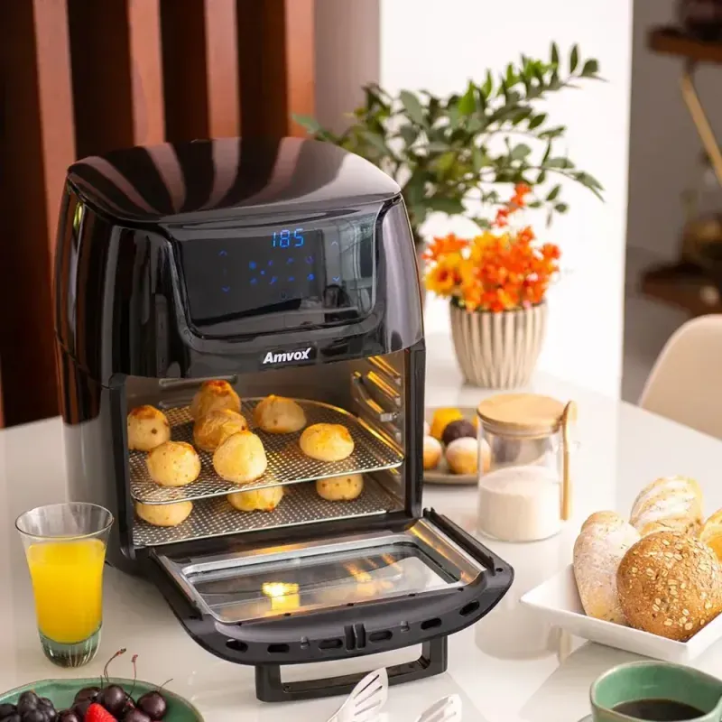 Descrição do Produto: A Amvox ARF 1222 Oven não é apenas uma fritadeira, é um verdadeiro centro gastronômico para a sua bancada. Com uma capacidade incrível de 12 litros, ela permite assar, fritar sem óleo e até desidratar alimentos em grandes quantidades de uma só vez. Seu design moderno com porta de vidro e iluminação interna permite que você acompanhe o preparo das receitas sem precisar abrir o aparelho, mantendo o calor e a eficiência.