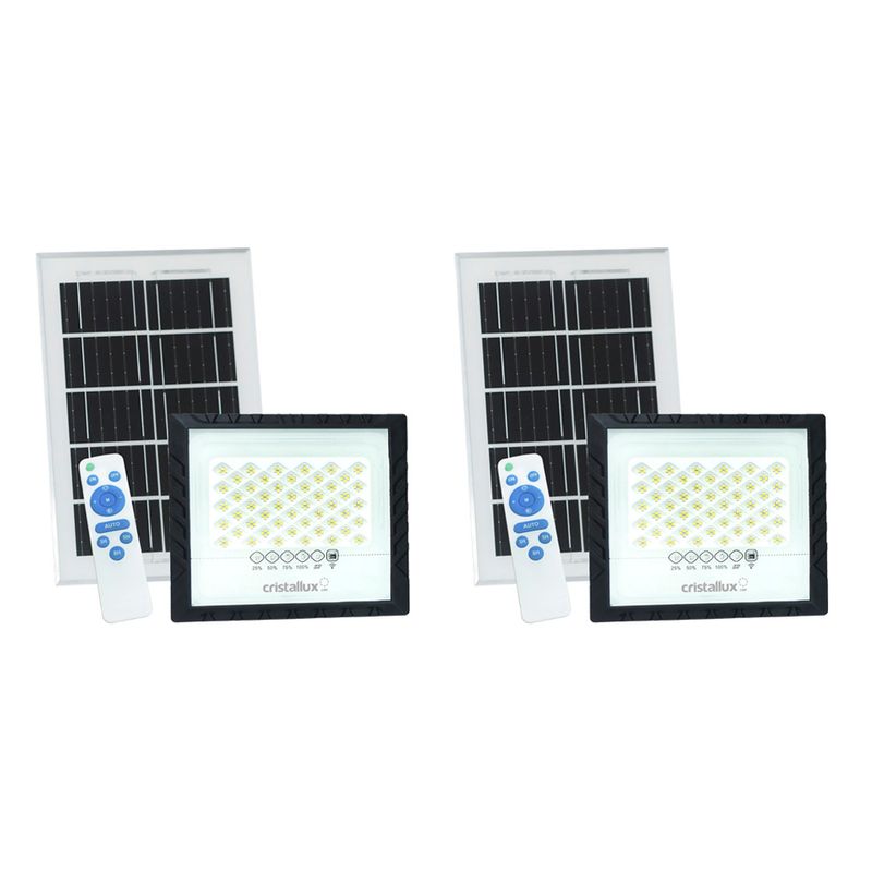 O Kit com 2 Refletores Solares Apollo Cristallux 100W 6500K é a solução prática e sustentável para iluminação externa, sem depender da rede elétrica.