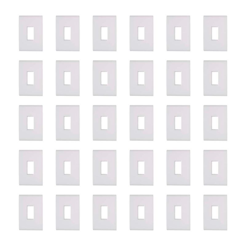 O Kit com 30 Placas 4x2 de 1 Posto Vertical Liz Branca Tramontina - Ref. 57106003 é ideal para instalações elétricas que exigem um acabamento moderno, discreto e funcional. Cada placa do kit é fabricada em termoplástico de alta qualidade na cor branca, com acabamento brilho que não retém poeira, facilitando a limpeza e manutenção. O sistema modular em duas peças — placa e suporte — permite um ajuste perfeito entre ambos, garantindo um acabamento impecável com a parede, sem deixar frestas. Além disso, possuem furo oblongo que facilita a fixação e a regulagem da placa à parede, deixando-a reta. A fixação não é aparente, contribuindo para um visual mais clean e moderno. Cada unidade acompanha suporte e parafusos para a instalação.