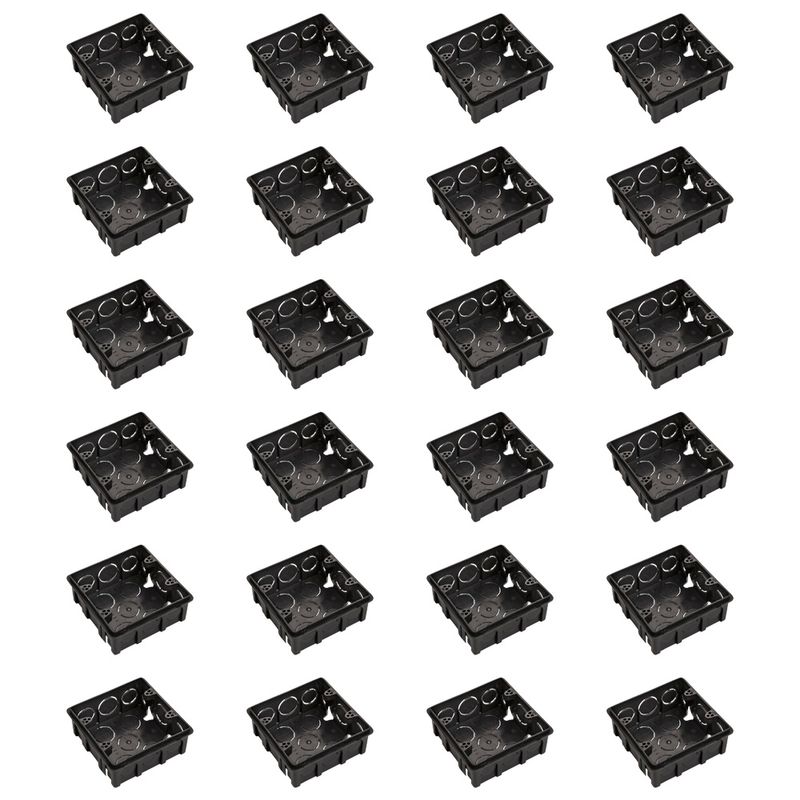 O Kit com 24 Caixas de Embutir Bet Plásticos 4x4 Preta - CX44102 é uma solução prática, resistente e funcional para instalações elétricas embutidas em paredes de alvenaria. Desenvolvidas com foco em qualidade e durabilidade, essas caixas oferecem excelente fixação e proteção para tomadas, interruptores e demais dispositivos elétricos.