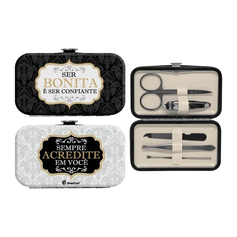A mulher moderna de hoje quer sempre andar elegante. Poder deixar suas unhas lindas em qualquer lugar seria ótimo, não é mesmo? E para isso tem que ter tudo que ela precisa sem ocupar muito espaço e de forma organizada! Nosso Kit Manicure é ideal para te acompanhar em todos os momentos do dia. Com 12 opções de estampas lindas e divertidas nosso Kit é super prático, e vai se tornar um item indispensável na sua bolsa.