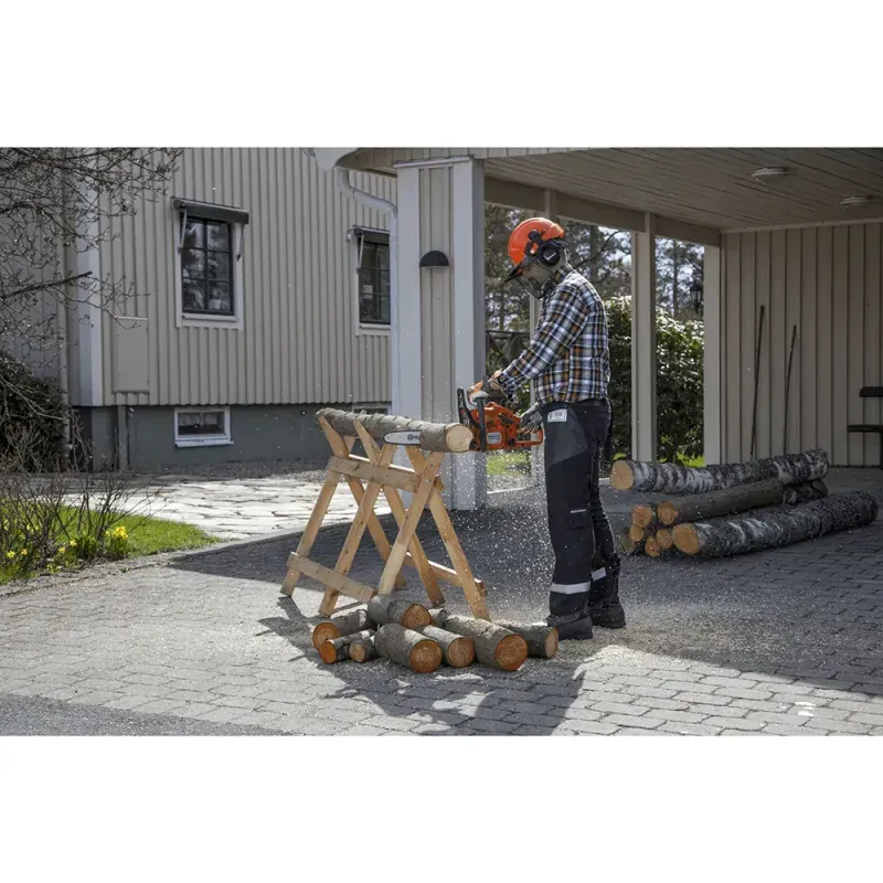 - A tampa da embreagem é projetada para otimizar a ejeção rápida e segura dos cavacos da serra. Evita o entupimento, mesmo ao cortar madeira de fibra longa.