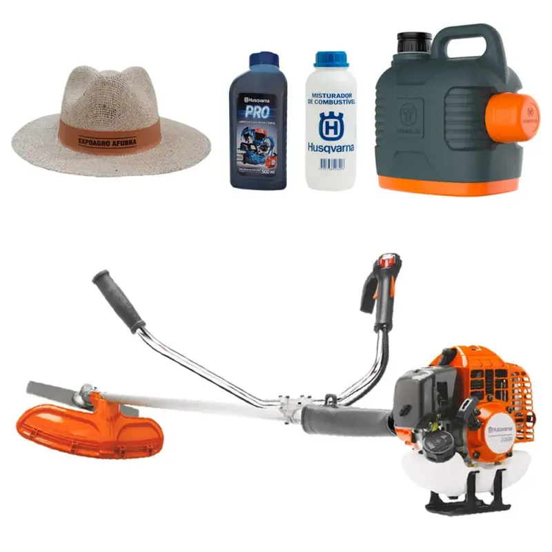 você encontra o Kit Roçadeira à Gasolina Husqvarna 236RS com Acessórios, uma solução completa para profissionais e entusiastas da manutenção de áreas verdes, terrenos rurais e jardins de médio e grande porte. Este kit foi desenvolvido para oferecer não apenas uma roçadeira potente e confiável, mas também uma gama de acessórios que tornam o equipamento extremamente versátil, permitindo ao operador realizar diferentes tarefas de corte, acabamento e limpeza de vegetação com um único produto. Ideal para agricultores, jardineiros, paisagistas, equipes de manutenção de parques, propriedades rurais e áreas comerciais, o kit 236RS proporciona uma experiência de uso completa, combinando potência, segurança e praticidade em cada operação.