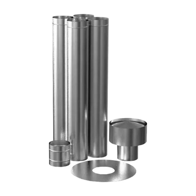 O kit de canos em inox incluso facilita a instalação e garante a eficiência na exaustão.