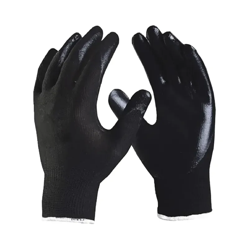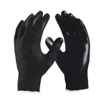 Luva de nylon preta recoberta com banho nitrílico preto na palma, face palmar dos dedos e ponta dos dedos, com punho elástico. A combinação do suporte têxtil em nylon com o banho em borracha nitrílica oferece tato e sensibilidade para atividades com ferramentas manuais, resistência mecânica e impermeabilidade* na palma para serviços de montagem e manutenção de peças úmidas ou oleadas*. (*) Para mais informações, consulte a ficha técnica.