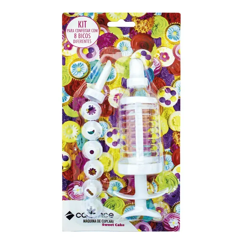 Pode ser utilizada no preparo de minicupcakes, pães de queijo, petit gâteau, bolinhos de chuva, empadinhas, tortinhas, biscoito de polvilho e muito mais. Acompanha 50 forminhas e um kit para confeitar com 8 pontas diferentes, permitindo criar diferentes tipos de cobertura e deixar os cupcakes muito mais atrativos.