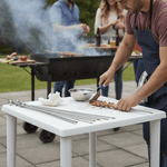 - Excelente para churrasqueiras e áreas gourmet externas, proporcionando uma superfície auxiliar resistente para preparo de alimentos ou apoio de utensílios.