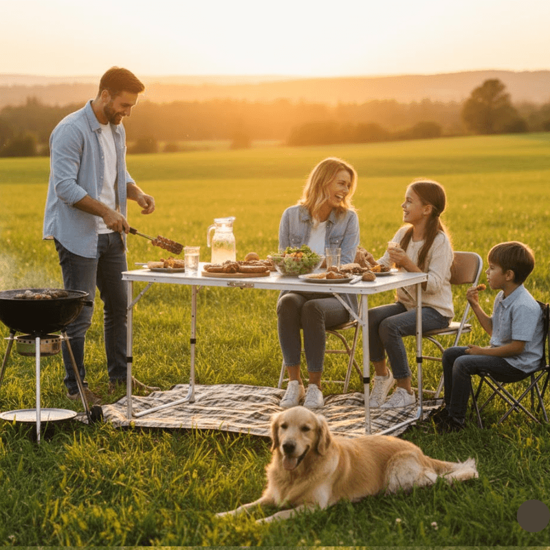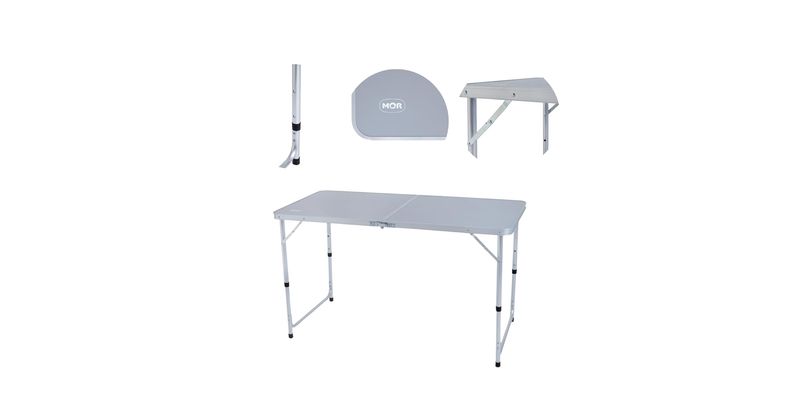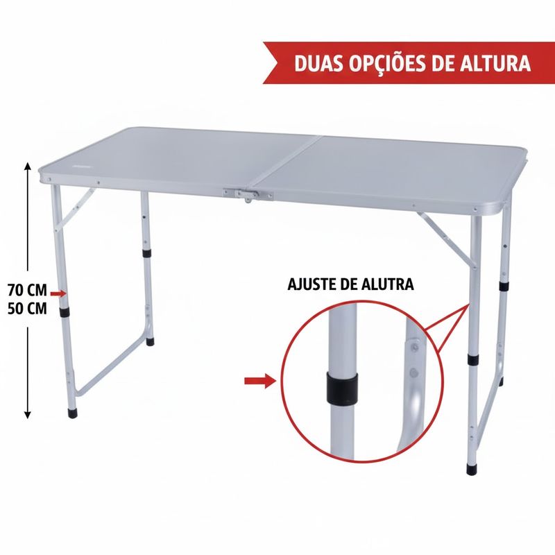 Diferenciais | Sistema de Fechamento em Maleta, Altura Ajustável, Estrutura em Alumínio, Tampo em MDF Reforçado, Pés Antiderrapantes |