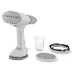 Vaporizador portátil 3 em 1. Alterne entre suas 3 funções com o apertar de um botão de acordo com sua necessidade: vaporizar, passar a seco, passar a vapor; Acessórios: escova para remoção de pelos, escova Duo Soft para tecidos delicados e copo medidor.