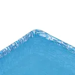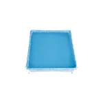 PVC azul de alta qualidade e sua estrutura é composta por tubos de aço com acabamento em pintura epóxi branca, que protege contra a oxidação. Possui peças plásticas de acabamento que evitam o contato direto com as bordas metálicas, garantindo maior segurança. É uma piscina extremamente simples de montar, desmontar e guardar, ocupando pouquíssimo espaço quando fechada.