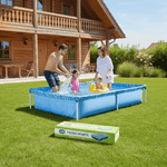 - Lona de Alta Resistência: Material em PVC azul que suporta o uso intenso da criançada.