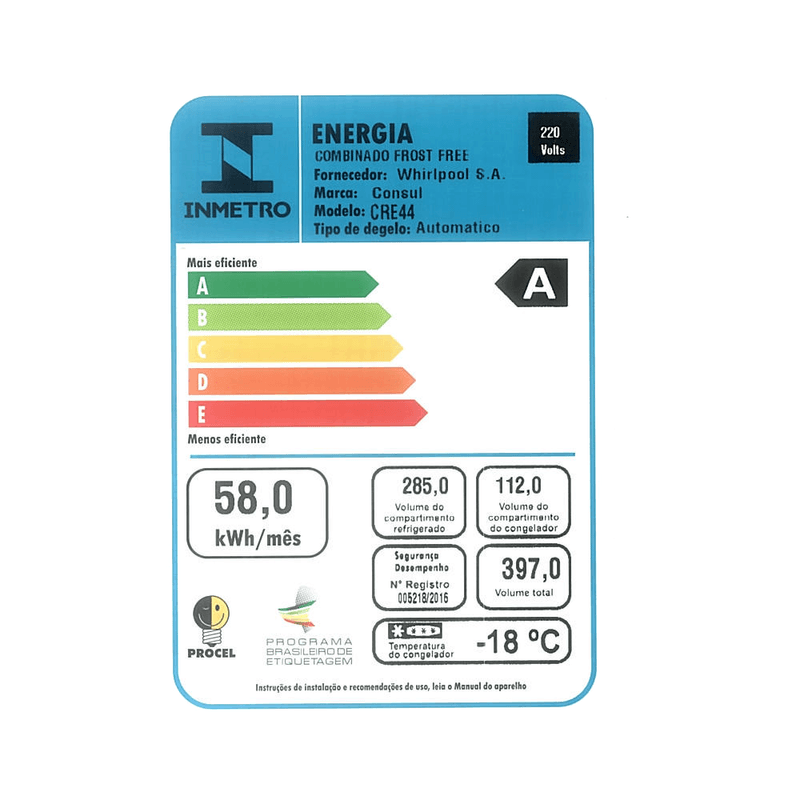 Geladeira / Refrigerador Consul Inverse, Duplex, Frost Free, com Turbo Freezer, 397L, Evox - CRE44AK 220V