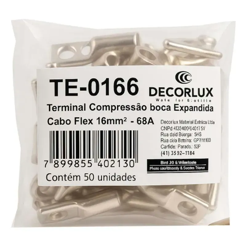 O Terminal Compressão Boca Expandida 16 mm² 68 A (50 unidades) da Decorlux é um conector elétrico de alta capacidade, usado para unir cabos/fios rígidos ou flexíveis com bitola de 16 mm², em aplicações que demandam corrente elevada (até 68 amperes). Ele possui boca expandida, que facilita a inserção do condutor, proporcionando melhor acomodação dos fios principais. Fabricado em cobre eletrolítico estanhado, garantindo ótima condutividade e resistência à corrosão. O modelo é compatível com parafuso ou furo tipo M6 quando usado em aplicação de compressão (alguns anúncios apontam “compressão M6” para esse terminal). Temperatura de trabalho típica e resistência mecânica adequadas ao uso em painéis elétricos, máquinas, motores, barramentos, instalações industriais ou comerciais.