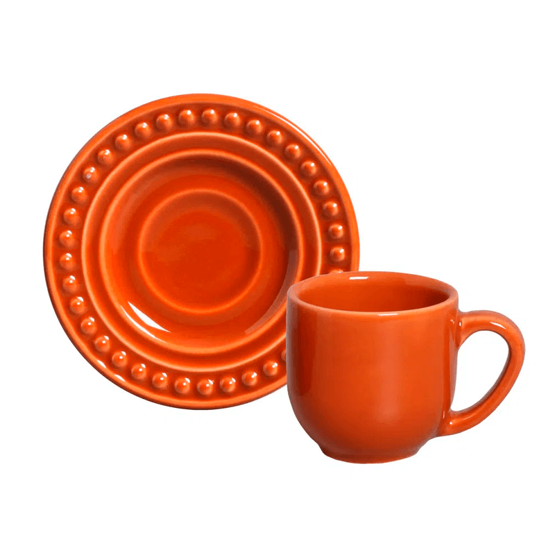 A Xícara de Café com Pires da linha Atenas Cantaloupe da Porto Brasil une delicadeza e funcionalidade em um design encantador. Com capacidade de 72ml, é perfeita para servir cafés expressos com charme e estilo. Seu tom coral suave traz aconchego e elegância à mesa posta, enquanto a cerâmica feldspática garante resistência e durabilidade. Ideal para uso diário ou momentos especiais, valorizando cada pausa para o café.